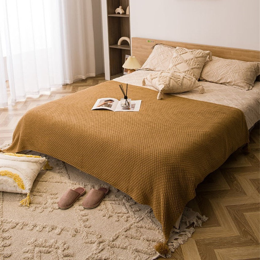 Wrap yourself in softness—this textured throw with tassel fringe adds cozy charm and a dash of elegance to any space.