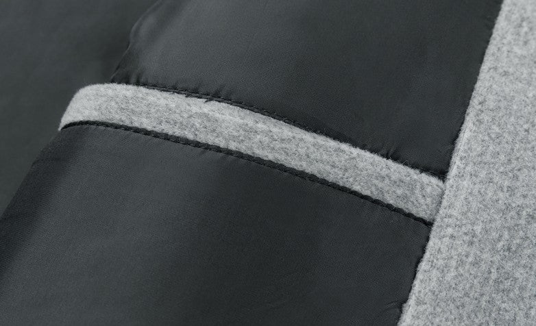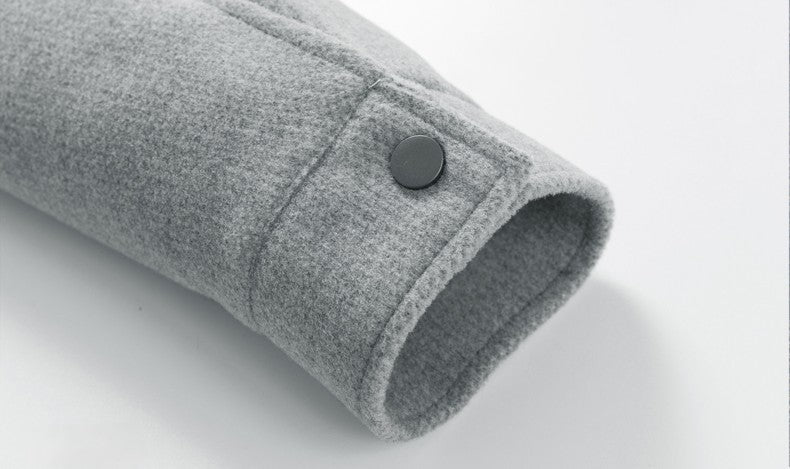 Made with a cashmere-polyester blend, this jacket combines soft comfort with lasting durability. The quilted lining keeps warmth in while allowing smooth layering over shirts or knits. Finished with snap closures and oversized flap pockets, it carries a refined utility edge.