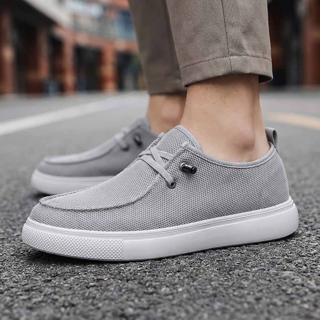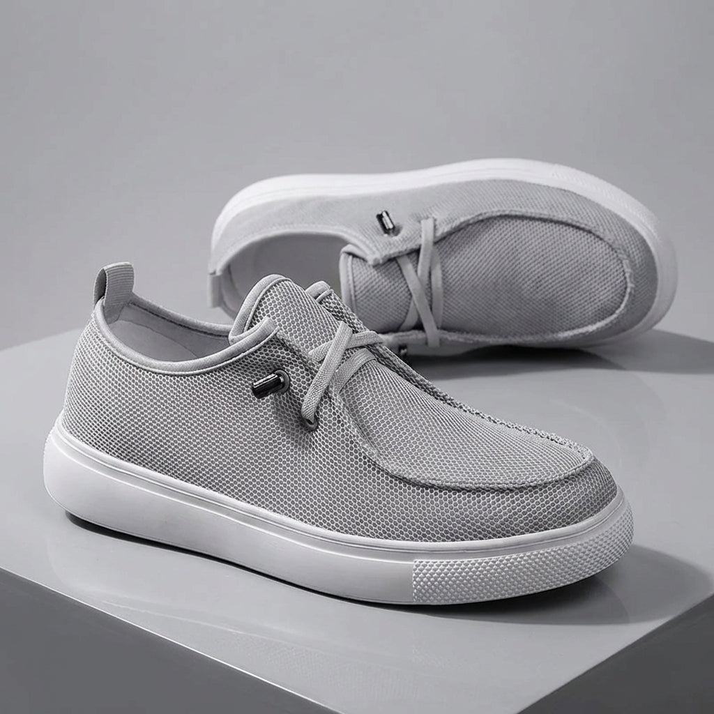 Built with a breathable knitted mesh upper, these slip-ons keep your feet cool and light. The flexible sole bends with your step, giving you lasting comfort without the weight of standard sneakers. We added adjustable elastic laces with a metal toggle for a quick, custom fit.