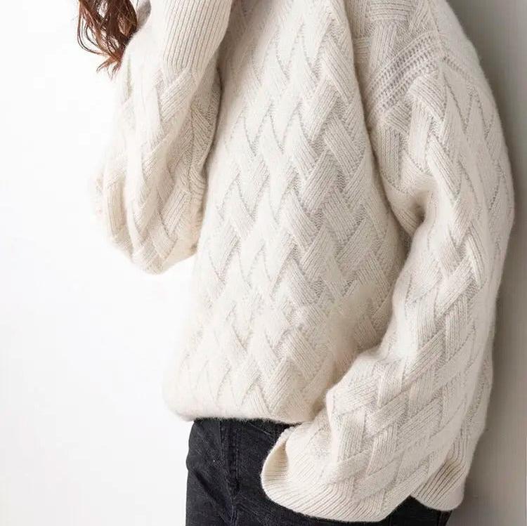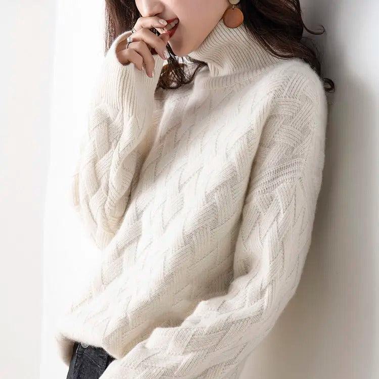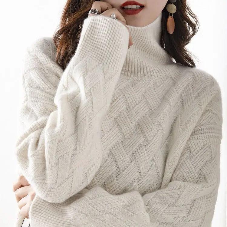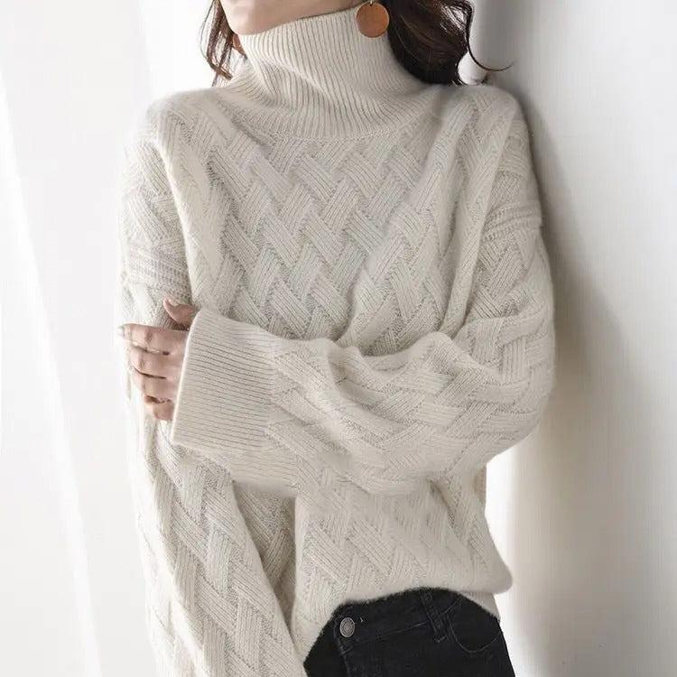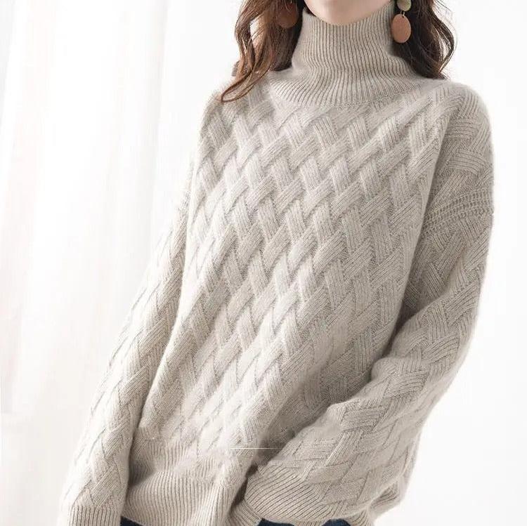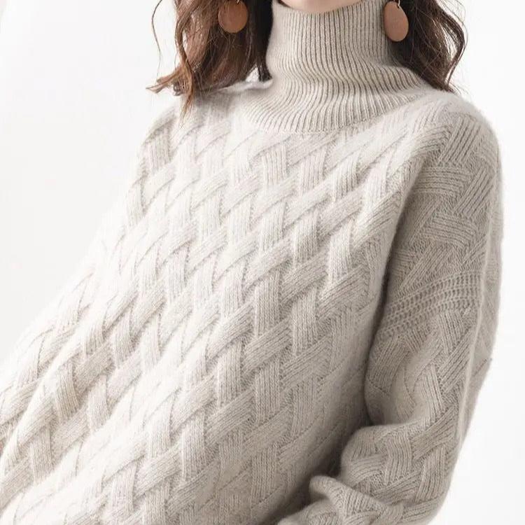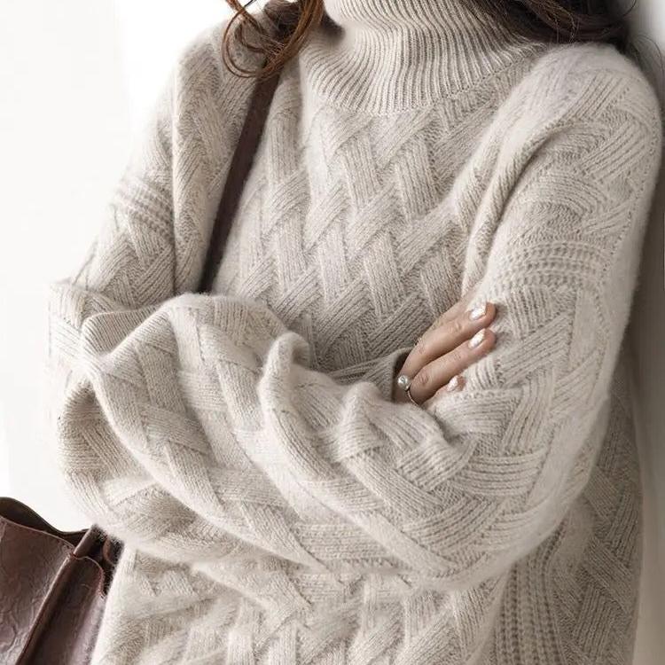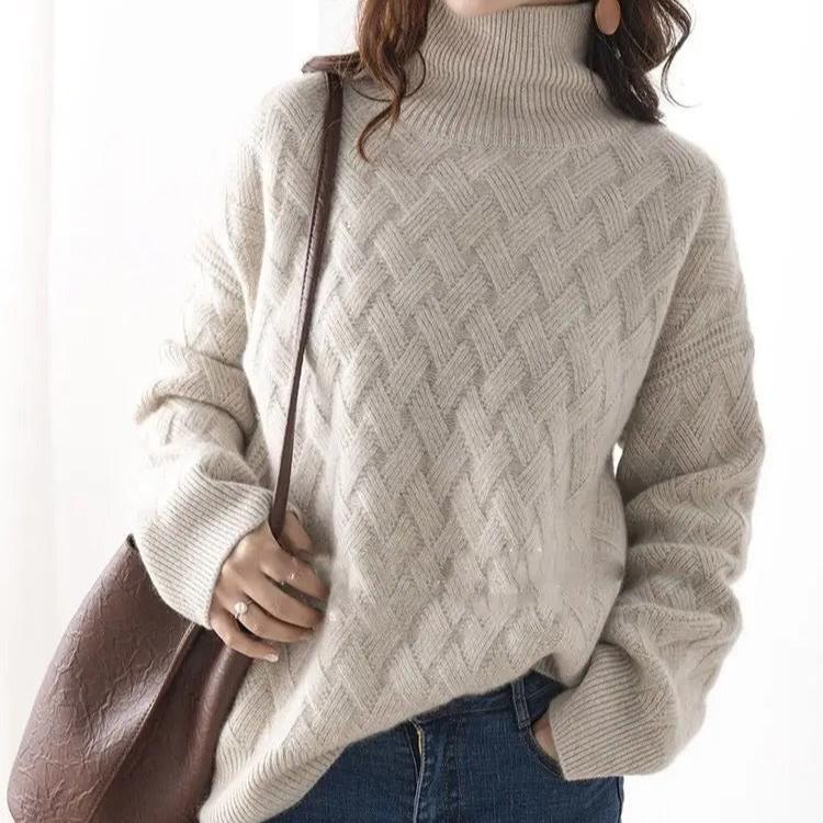 Embrace the chill in this luxurious cashmere turtleneck, featuring an elegant basketweave pattern that adds texture and style. Its buttery soft feel offers unmatched warmth and comfort for any cold-weather occasion.
